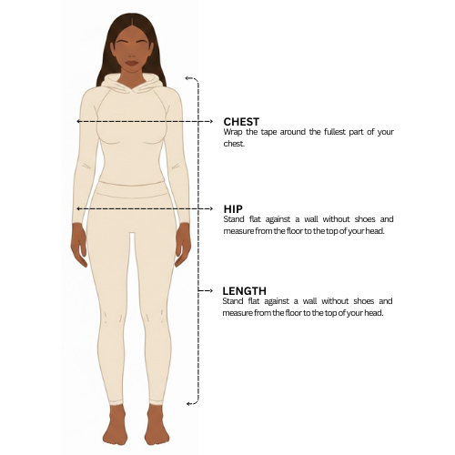 | Size | Chest (inches) | Hip (inches) | Length (inches) |